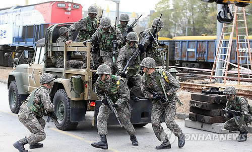 | △ 충무훈련에 참가한 육군 장병들이 테러범 진압을 위해 출동하고 있다.(연합뉴스 자료사진) |