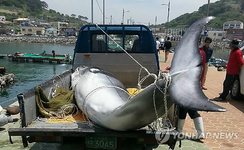 가덕도 앞바다서 밍크고래 1마리 그물에 걸려