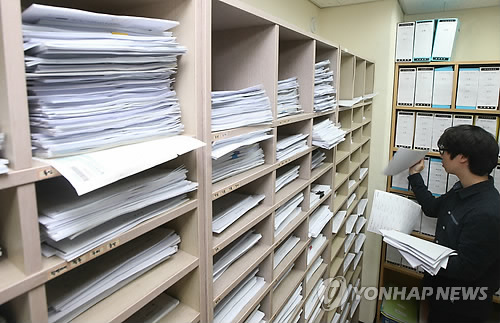 | △ 서울 종로구 신문로 한국납세자연맹에서 직원들이 연말정산 환급서류를 정리하고 있다. (연합뉴스 자료사진) |