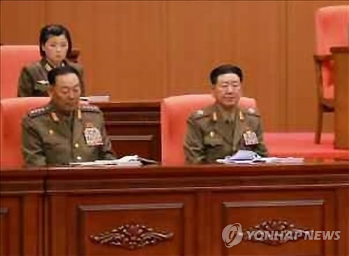 | △ 현영철 전 북한 인민무력부장(앞줄 왼쪽)(연합뉴스 자료사진) |