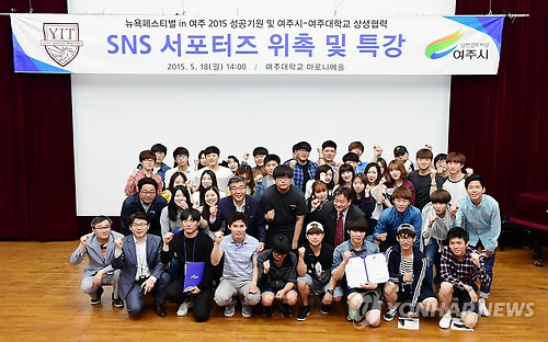 (여주=연합뉴스) 강창구 기자 = 여주시는 18일 오후 여주대학교 마로니에홀에서 '뉴욕페스티벌 IN 여주 2015' SNS 서포터스 회원 위촉식을 했다.