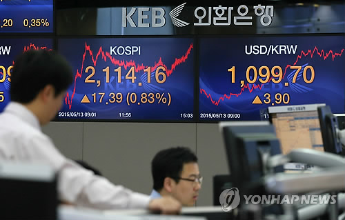 이날 코스피는 전 거래일보다 7.22포인트(0.34%) 오른 2,113.72로 장을 마감했다.