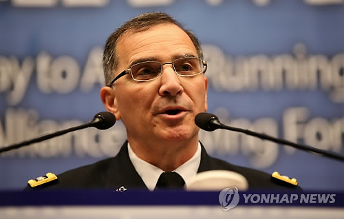 (서울=연합뉴스) 이영재 기자 = 커티스 스캐퍼로티 주한미군사령관은 19일 북한의 비대칭 전력 위협이 날로 강화되고 있다며 이는 북한의 최근 잠수함 발사 탄도미사일(SLBM) 사출시험에서도 잘 드러난다고 경고했다.