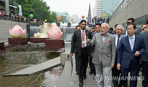 모디 인도 총리, 박원순 시장과 청계천 둘러봐