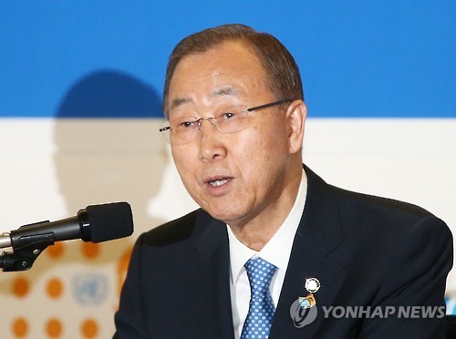 | △ 답변하는 반기문 유엔 사무총장 (인천=연합뉴스) 윤태현 기자 = 반기문 유엔 사무총장이 19일 오후 인천시 연수구 송도컨벤시아에서 열린 기자회견에서 취재진의 질문에 답변하고 있다. |