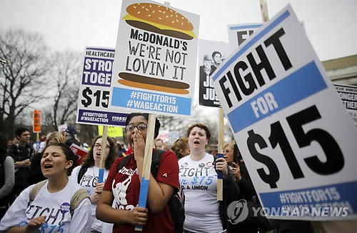 미국에서는 지난해부터 맥도날드 등 패스트푸드 매장 노동자들을 중심으로 최저 임금 인상과 노동환경 개선을 요구하는 시위가 이어졌다.