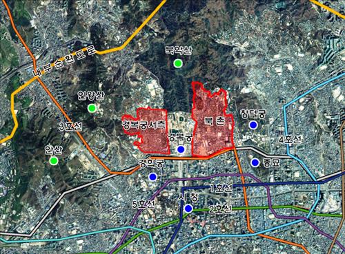 북촌과 경복궁 서측지역은 각각 경복궁의 동쪽과 서쪽에 위치, 역사문화 경관 보존을 위해 저층 주거지 형태로 관리되고 있다. 북촌의 한옥비율은 31.2%(668개동), 경복궁 서측지역은 46.2%(1천233개동)에 이른다.