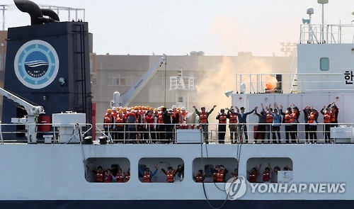 (부산=연합뉴스) 이종민 기자 = "승객들은 모두 갑판으로 신속히 나오세요"
