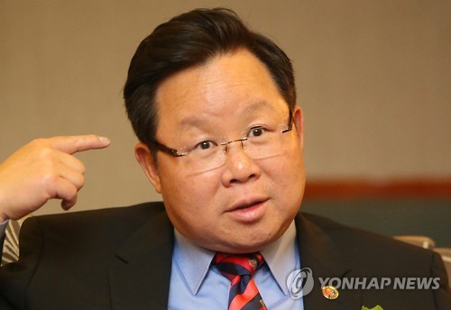 | △ 답변하는 마크 김 판사 (서울=연합뉴스) 서명곤 기자 = 21일 오전 서울 서초구 반포동 JW메리어트호텔에서 열린 2015 서울 국제 형사법 콘퍼런스에 참석중인 마크 김 미국 LA 항소법원 판사가 취재진의 질문에 답하고 있다. 2015.5.21 seephoto@yna.co.kr |