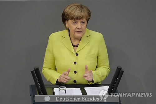 △ 'EU-동부파트너십' 정상 라트비아 회동 (베를린 AP=연합뉴스) 앙겔라 메르켈 독일 총리가 21일(현지시간) 베를린의 연방의회에서 'EU-동부파트너십' 정상회의에 관해 설명하고 있다. 유럽연합(EU)과 우크라이나 등 옛 소련권 6개국과 협력을 강화하기 위한 'EU-동부파트너십' 정상회의는 이날부터 이틀간 EU 순회의장국인 라트비아의 수도 리가에서 열린다. 2013년 11월 리투아니아 빌뉴스에서 열린 EU-동부파트너십 정상회의가 우크라이나 사태 촉발 계기가 된 이후 처음 열리는 이번 회의는 EU의 동부 확대 정책을 재확인하고 이에 반발하는 러시아와의 관계 정립 방안이 중점 논의될 것으로 보인다. bulls@yna.co.kr