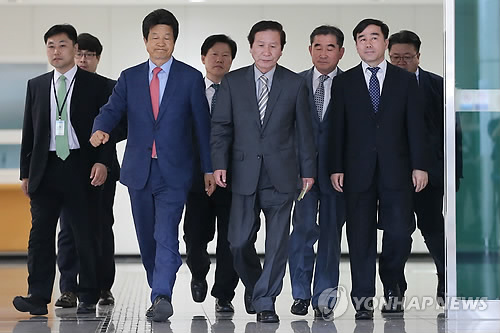 △ 정기섭 개성공단기업협회장(가운데) 등 기협관계자들(연합뉴스 자료사진)