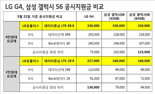 LGU+ 6만원대 데이터요금에 갤S6·G4 지원금 33만원