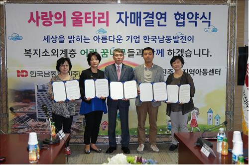 | △ 한국남동발전이 22일 진주 지역 4개 아동센터와 '사랑의 울타리' 자매결연 협약을 맺었다. |