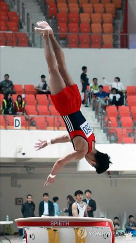 (서울=연합뉴스) 차병섭 기자 = '도마의 신' 양학선(23·수원시청)이 7월 열리는 2015광주하계유니버시아드 대회 남자기계체조 선발전에서 출전권을 획득했다.