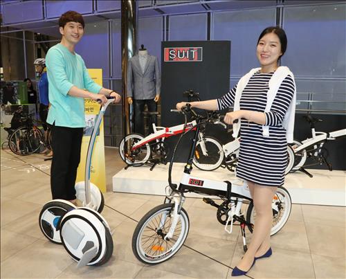 1층에서는 라이딩 용품 브랜드 '얼바인'과 출퇴근용으로 탈 수 있는 '수트 전기자전거' 임시매장이 운영된다.