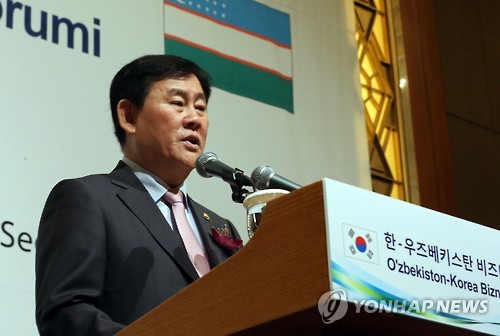 | △ 최경환 경제부총리 한-우즈베키스탄 비즈니스포럼 환영사 (서울=연합뉴스) 최재구 기자 = 최경환 경제부총리가 26일 서울 소공동 롯데호텔에서 열린 한-우즈베키스탄 비즈니스포럼에서 환영사를 하고 있다. |