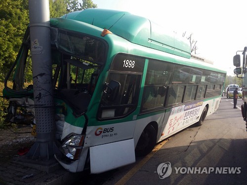 (고양=연합뉴스) 권숙희 최재훈 기자 = 술에 취한 승객이 버스 운전기사를 폭행하는 바람에 교통사고로 이어져 승객 등 20명이 중경상을 입었다.
