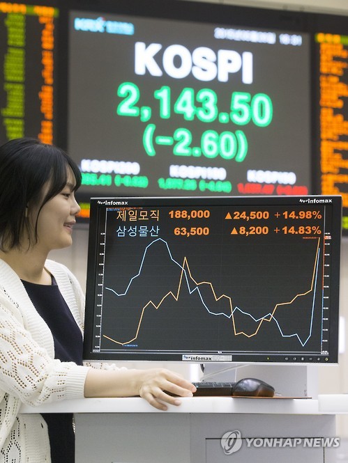 이날 코스피지수는 전 거래일보다 2.60포인트(0.12%) 내린 2,143.50으로 장을 마쳤다.