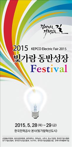 (서울=연합뉴스) 이봉준 기자 = 한국전력[015760]은 28∼29일 전남 나주 빛가람혁신도시 본사에서 '같이 가는 길, 가치 있는 길'을 주제로 '2015 빛가람 동반성장 페스티벌(KEPCO Electric Fair 2015)'을 연다고 26일 밝혔다.