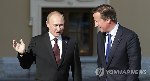 | △ 블라디미르 푸틴 러시아 대통령과 데이비드 캐머런 영국 총리. (AP=연합뉴스 자료사진) |