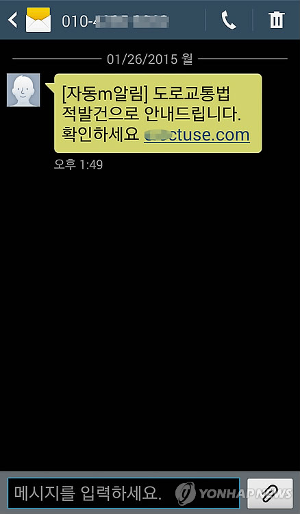 스미싱 유도 문자는 청첩장, 돌잔치 초대, 경찰 출석 요구서, 교통범칙금 조회, 건강보험공단 무료 진단, 카드대금 조회 등 유형이 다양하고 교묘하게 진화하고 있다고 금감원은 전했다.