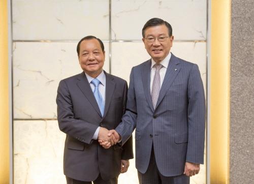 (서울=연합뉴스) 성혜미 기자 = 박삼구 금호아시아나그룹 회장이 27일 오전 서울 소공동 더 플라자호텔에서 레 탄 하이(Le Thanh Hai) 베트남 호찌민시 당서기를 만나 양국 간 민간 차원의 교류 활성화와 기업 투자 확대방안 등에 대해 논의했다.