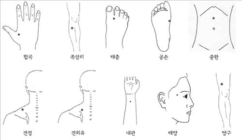 연구팀은 이런 기능성 소화불량증을 호소하는 국내 성인남녀 76명을 대상으로 4주간 총 8회에 걸쳐 침 치료를 했다. 침은 합곡, 태충 등 9개의 기본 혈자리는 물론 개별 증상(두통, 메스꺼움 등)에 따라 견정, 내관 등 10개의 혈자리에 추가로 놓았다.