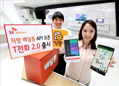 (서울=연합뉴스) 한지훈 기자 = SK텔레콤[017670]은 28일 상대방과 웹 페이지 등을 함께 보며 통화할 수 있는 'T전화 2.0' 플랫폼을 부동산 중개 앱인 '직방'과 배달음식 주문 앱인 '배달통' 등에 개방했다.