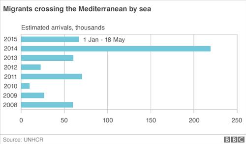 그러다 리비아 내전이 불거진 2011년 지중해 난민이 급증했고 지난해에는 22만명이 유럽에 도착한 것으로 추정된다. 이중 17만명이 이탈리아 해안에 도착했다.
