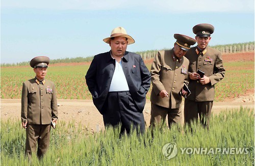 | △ 북한 김정은, 군부대 산하 종자연구농장 시찰 (서울=연합뉴스) 김정은 북한 국방위원회 제1위원장이 인민군 제810군부대 산하 1116호 농장을 시찰했다고 노동신문이 1일 전했다. 2015.6.1 nkphoto@yna.co.kr |
