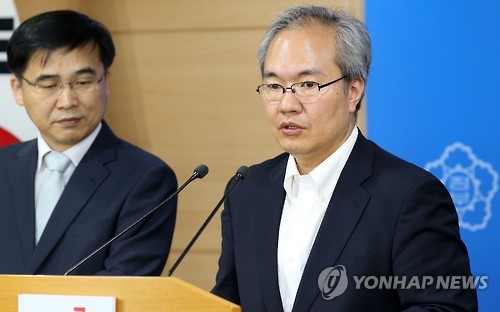 | △ 메르스 상황 브리핑 (서울=연합뉴스) 전수영 기자 = 중앙 메르스 관리대책본부 권주욱(오른쪽) 기획총괄반장(보건복지부 공공보건정책관)이 1일 오전 정부서울청사에서 메르스 상황에 관한 브리핑을 하고 있다. 왼쪽은 김우주 대한감염학회 이사장. |