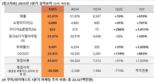 옐로모바일은 1분기 시장점유율 확대와 서비스 고도화를 위해 대표 쇼핑미디어인 쿠차와 뉴스 큐레이션 서비스인 피키캐스트 마케팅에 각각 135억원, 88억원을 투자했으며 앞으로도 공격적인 투자를 지속한다고 전했다.