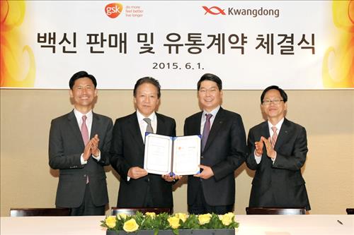 (서울=연합뉴스) 전명훈 기자 = 광동제약[009290]은 글락소스미스클라인(GSK)의 백신 8개 품목을 다음달부터 3년간 국내에서 판매·유통하기로 하는 계약을 체결했다고 1일 밝혔다.