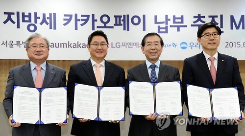 서울시는 연내 카카오페이 지방세 납부 서비스를 시작하기로 하고 2일 오전 다음카카오, LG CNS, 우리은행과 시스템 구축과 운영을 위한 양해각서를 체결한다.