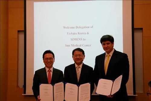 (서울=연합뉴스) 박대한 기자= 지멘스 헬스케어는 대전 선병원과 함께 우즈베키스탄 국영 자동차 제조사인 우즈오토와 직원건강검진센터 설립을 위한 양해각서(MOU)를 체결했다고 2일 밝혔다.