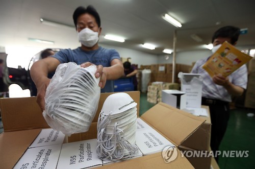 △ 서울시, 메르스 방역물품 배부 (서울=연합뉴스) 신준희 기자 = 2일 오후 서울 성동구 용답동 서울시 예방약품비축소에서 관계자들이 메르스 의심환자와 가족들에게 배부될 N95 마스크 수량을 체크하고 있다. 서울시는 이날 각 자치구에 마스크, 손 세정제 등 메르스 관련 방역물품을 배부했다. 2015.6.2 hama@yna.co.kr