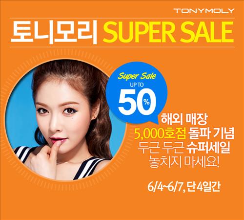 (서울=연합뉴스) 고유선 기자 = 화장품 브랜드 토리모리는 해외 매장 5천호점 돌파 기념으로 4∼7일 모든 품목을 최대 50% 할인 판매하는 '슈퍼 세일' 행사를 연다.
