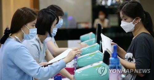 | △ 경기도 수원의 한 건강검진 의료기관에서 검진을 받은 시민과 의료기관 관계자 모두 마스크를 착용한 채 대화를 나누고 있다. (연합뉴스 자료사진) |