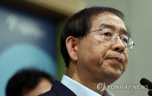 | △ 굳은 표정의 박원순 시장 (서울=연합뉴스) 신준희 기자 = 박원순 서울시장이 4일 오후 시청 브리핑룸에서 메르스 관련 긴급 브리핑을 하고 있다. 박 시장은 "메르스 확진 환자인 서울의 한 의사가 격리 통보에도 불구하고 1천400명 규모의 행사에 참석했다"고 밝혔다. 2015.6.4 hama@yna.co.kr |