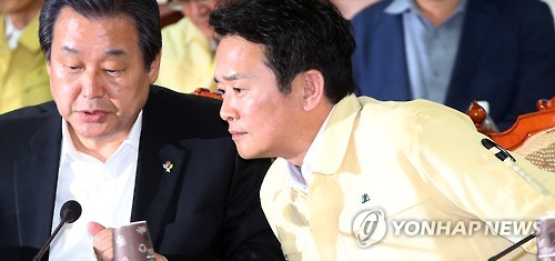 | △ 새누리당-경기도 메르스 관련 대책회의 (수원=연합뉴스) 신영근 기자 = 6일 오후 경기도 수원 경기도청에서 새누리당과 경기도의 메르스 관련 대책회의가 열려 새누리당 김무성 대표(왼쪽)가 남경필 경기도지사와 이야기를 나누고 있다. 2015.6.6 drops@yna.co.kr http://blog.yonhapnews.co.kr/geenang |