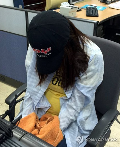 | △ 신생아 시신 모친에게 보낸 30대 여성 (나주=연합뉴스) 장덕종 기자 = 어머니에게 신생아 시신을 택배로 보낸 A(35·여)씨가 6일 전남 나주경찰서에서 조사를 받고 있다. 2015.6.6 cbebop@yna.co.kr |