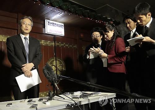 | △ 이하라 준이치 외무성 아시아대양주국장이 2014년 10월 29일 북한 평양의 양각도 호텔에서 일본인 납북자 문제와 관련해 기자회견을 하고 있다.(연합뉴스 자료사진) |