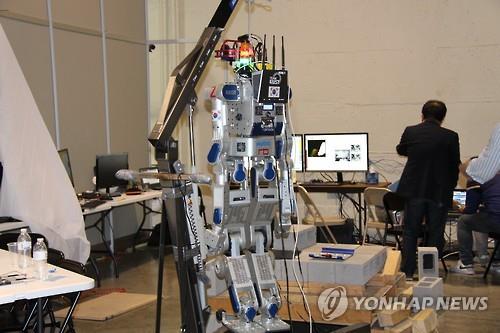 (포모나<미국 캘리포니아주> AFP=연합뉴스) 세계 최고의 재난대응 로봇을 뽑는 대회 '다르파 로봇 챌린지'(DRC)에서 6일(현지시간) 한국 카이스트(KAIST)팀이 우승을 거머쥐었다.
