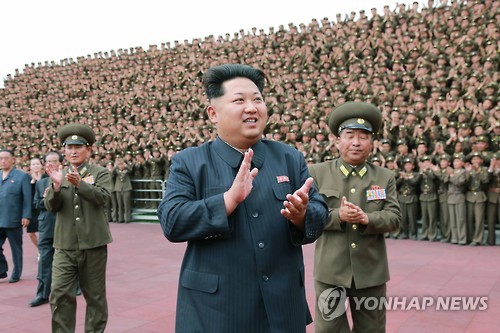 | △ 김정은, 원산 고아원 완공 치하하며 군인들과 기념사진 (평양 조선중앙통신=연합뉴스) 김정은 북한 국방위원회 제1위원장이 강원도 원산의 고아원인 육아원, 애육원이 완공된 것을 치하하며 군인 건설자들과 기념사진을 찍었다고 조선중앙통신이 3일 보도했다. 통신은 이 사진을 보도하며 정확한 촬영날짜는 밝히지 않았다. 2015.6.3 photo@yna.co.kr |