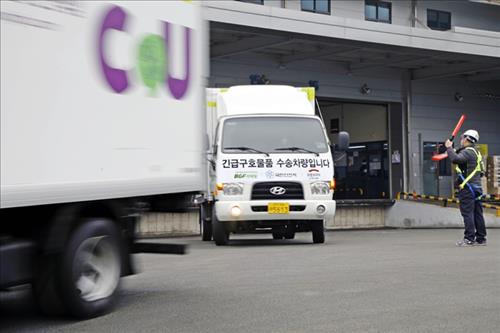 (서울=연합뉴스) 이유미 기자 = 편의점 씨유를 운영하는 BGF리테일은 8일 국민안전처와 함께 메르스로 인해 격리된 전북 순창군 장덕마을에 긴급구호물품을 전달했다고 밝혔다.