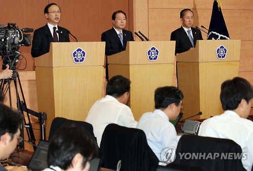 △ 5·24조치 5년 (서울=연합뉴스) 2010년 5월 24일 현인택 당시 통일부 장관(왼쪽)과 유명환 외교부 장관, 김태영 국방장관이 도렴동 정부청사 별관에서 합동기자회견을 열고 대북 대응책을 발표하고 있다. 그해 3월 26일 천안함 피격사건이 발생하자 정부는 민·군 합동조사단의 조사를 거쳐 북한의 소행으로 결론 내리고 북한 선박의 우리해역 운항 불허, 남북교역 중단, 개성공단과 금강산 제외 방북 불허, 북한에 대한 신규투자 불허, 인도적 지원 제외 대북지원 사업 보류 등을 골자로 한 5·24 조치를 발표했다. 2015.5.20 << 연합뉴스DB >> photo@yna.co.kr