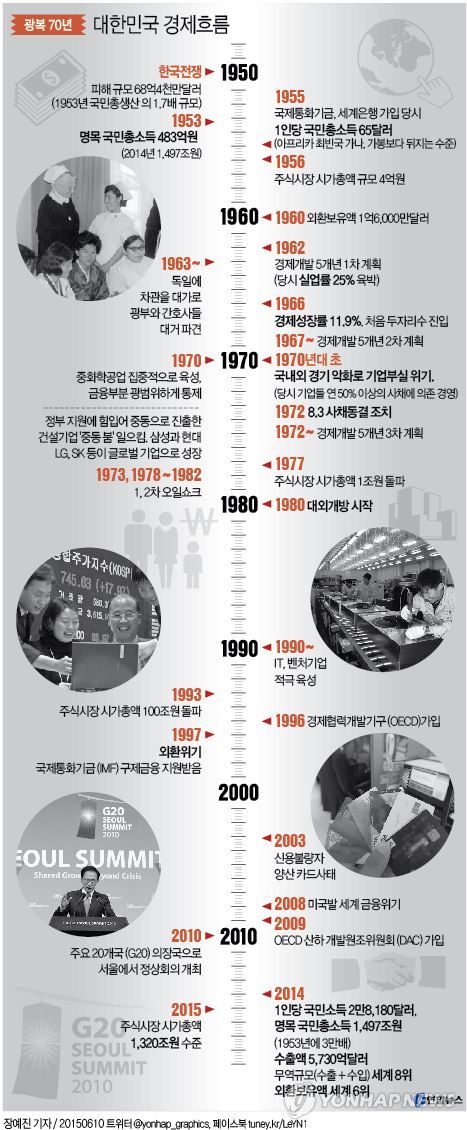 광복 이후 70년간 한국 경제가 여러 차례의 위기를 극복하면서 비상을 거듭한 결과다.