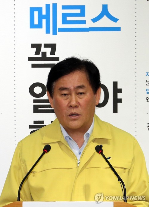 | △ 대국민 당부의 말하는 최경환 총리대행 (세종=연합뉴스) 배재만 기자 = 최경환 국무총리 직무대행이 10일 오전 정부세종청사 보건복지부 공용브리핑룸에서 중동호흡기증후군(MERS·메르스) 관련 대국민 당부의 말을 발표하고 있다. |