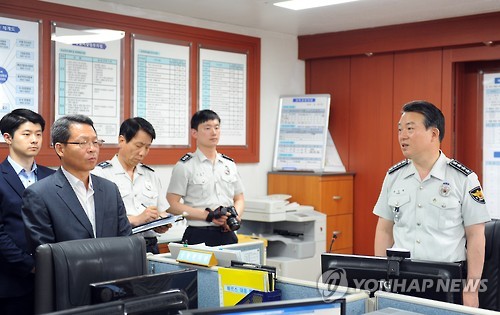 (화성=연합뉴스) 류수현 기자 = 강신명 경찰청장이 10일 오후 경기 평택경찰서를 방문해 메르스 관련 사항을 점검했다.