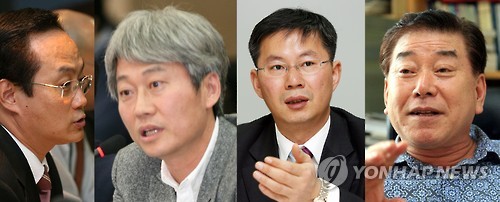 △ 6·15 15주년 맞아 남북관계 해법 제언한 전문가들 (서울=연합뉴스) 6·15 공동선언 발표 15주년을 맞아 전문가들은 남북관계를 풀기 위해서는 5·24 조치 해제와 비공식 물밑접촉 등을 검토할 필요가 있다고 제언했다. 왼쪽부터 김영수 서강대 정치외교학과 교수, 김근식 경남대 정치외교학과 교수, 김용현 동국대 북한학과 교수, 문정인 연세대 정치외교학과 교수.